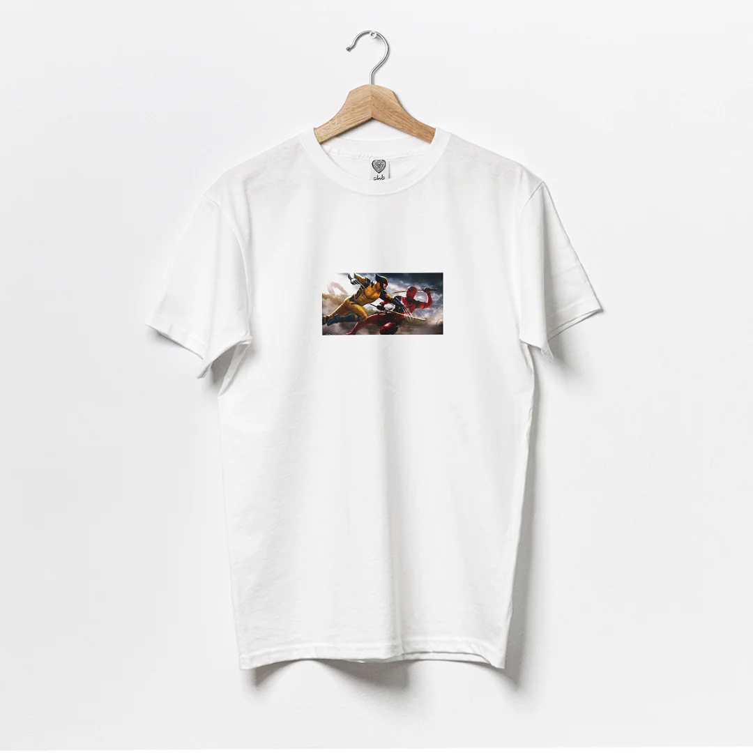 تیشرت سفید مردانه طرح ددپول و ولورین